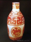 白地套红玻璃开光夔凤纹瓶(清乾…