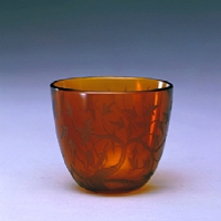 磨花玻璃花卉纹杯…
