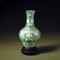 白地套绿色玻璃开光花卉纹瓶(清代)