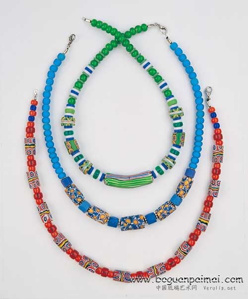 本场拍品以十七至十九世纪欧洲各国制造的琉璃料贸易珠及古蜜蜡珠等珠饰为主。此类老琉璃珠在国际艺世界,因其有当年换取黄金、奴隶、棕榈油、象牙等贸易代币功能,而泛称为贸易珠(Trade Beads)。部分贸易珠因其独特罕少而珍贵价昂,一直是收藏、品玩、保值的国际性艺术品。